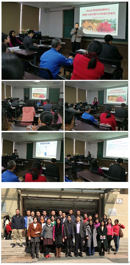 1月15日,中山大学实验动物中心在北校园科技楼503讲学厅召开了党支部扩大会议暨2018年度工作会议,会议由中山医学院陈琼珠副院长主持。中山医学院院长、中心主任宋尔卫教授、王斌副书记以及中心全体成员共50余人参加了会议。