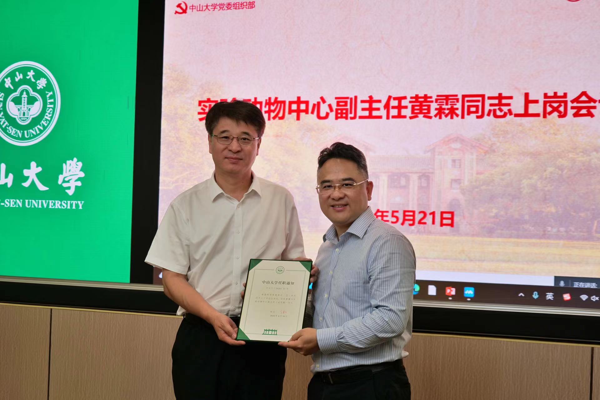 会上,党委组织部副部长潘蓉同志宣读了学校党委关于干部任命的决定,宣布黄霖同志担任实验动物中心副主任。邰忠智副校长为黄霖同志颁发干部任命书。