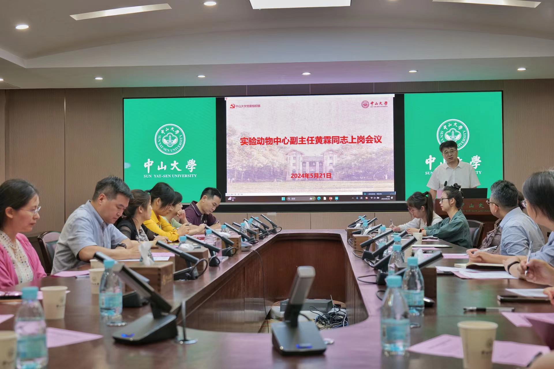 2024521日上午,实验动物中心召开副主任黄霖同志上岗会议,中山大学副校长邰忠智、党委组织部副部长潘蓉、中心领导班子成员、中心全体技术人员参加会议。会议由实验动物中心副主任(主持工作)蔡卫斌教授主持。