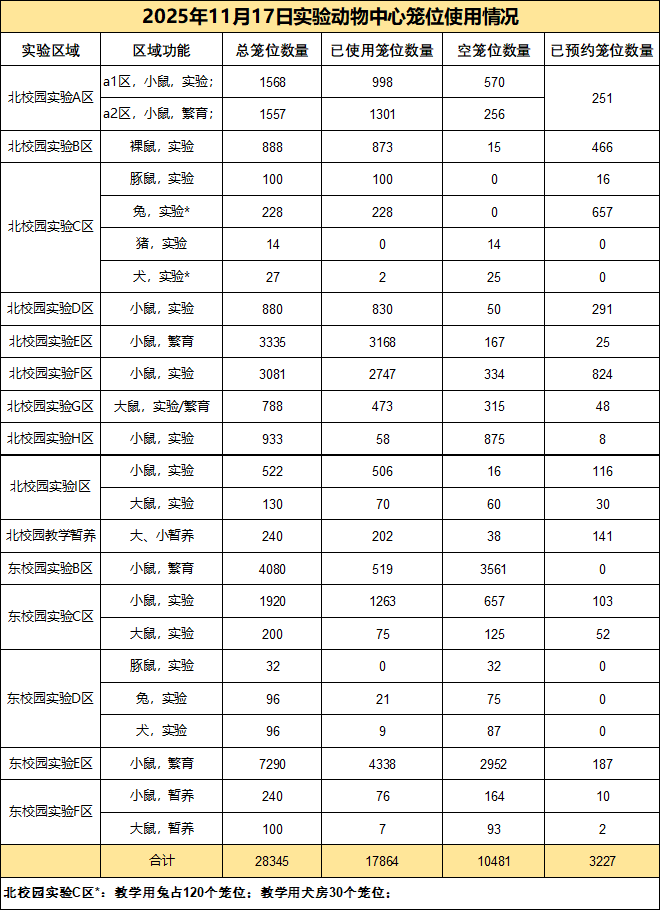 导航痕迹 中山大学实验动物中心 新闻公告 通知公告 2025年11月17日-实验动物中心笼位使用情况 扫描此二维码分享 2025年11月17日-实验动物中心笼位使用情况 发布人:曾嘉城 发布日期:2025-11-17